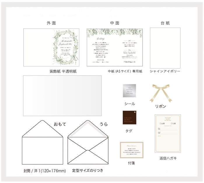 招待状の本文・封筒・返信はがき等を印刷した状態でお届けします。商品到着後、中紙等の折り曲げやリボン掛けをして仕上げてください。